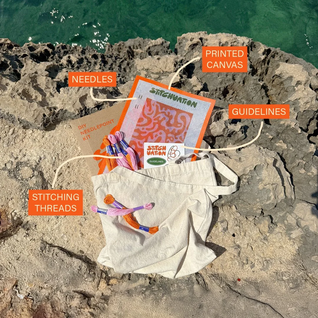 Our kits have everything you need to create your masterpiece, no matter where you’re starting from. Each package comes with a pre-printed mesh, tons of threads, a needle, and super easy instructions.